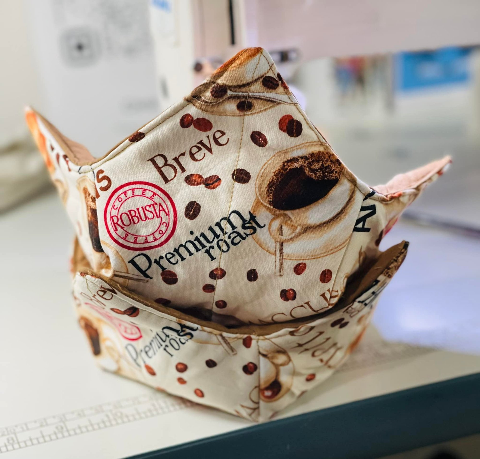 Custom-made bowl covers to protect against heat. Various designs, patterns and colors are available. Sold in pairs.